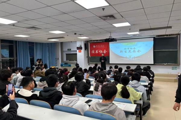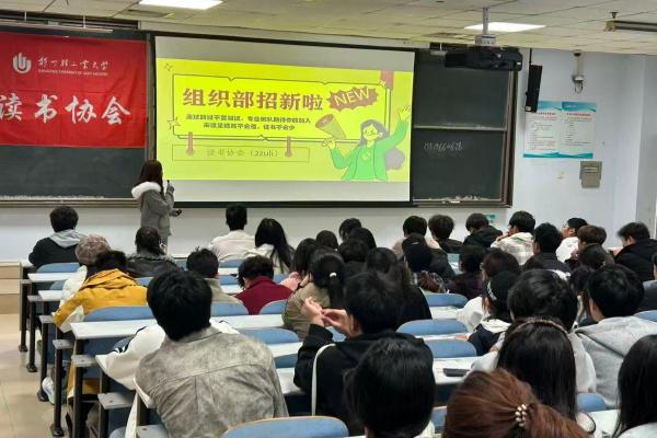 为助力2025级新生快速融入校园文化生态,构建以文会友、以书求知的交流平台,近日,郑州轻工业大学东风校区读书协会于教学楼多功能厅成功举办新生见面会。图书馆指导老师、校团委相关负责人及读书协会全体骨干成员及200余名新生代表齐聚一堂,共赴这场书香之约,现场秩序井然,氛围庄重而热烈。