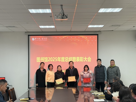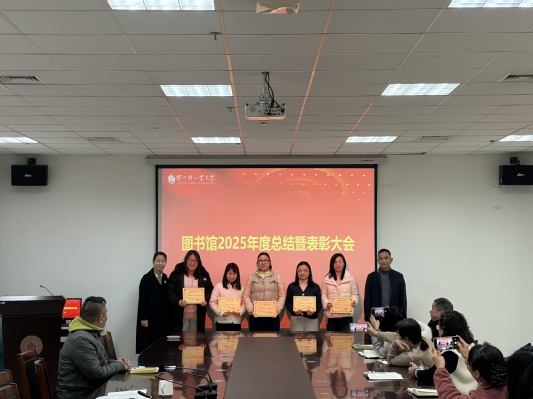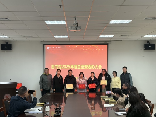 1月6日,图书馆在逸夫馆会议室召开2025年度工作总结暨表彰会议。图书馆全体职工参加会议,党总支书记杜红亮教授主持会议。