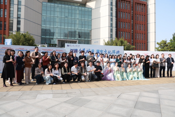 活动在舞蹈团带来的《小花妖》中拉开帷幕,舞影蹁跹,春光正好,灵动的舞姿瞬间点燃全场热情。随后,读书协会带来的小品《座谈会风波》以幽默诙谐的表演引发阵阵笑声,展现了校园生活中智慧与趣味的碰撞。声乐团同学带来的独唱《红尘客栈》,以悠扬的旋律和深情的演绎,将江湖儿女的侠义与柔情娓娓道来。紧接着,读书协会的同学们倾情朗诵《琵琶行》与《李凭箜篌引》,字字铿锵,句句动情,带领现场观众穿越千年,感受唐诗的磅礴与婉约。器乐团带来的民乐齐奏《青花瓷》,丝竹声声,婉转悠扬,以旋律传古韵,用乐声颂精神。活动最后,来自国际教育学院的两位留学生身着汉服朗诵古典诗词,赢得阵阵掌声。最后,全场师生在《少年》《我的未来不是梦》《歌唱祖国》歌曲串烧中将活动推向高潮。