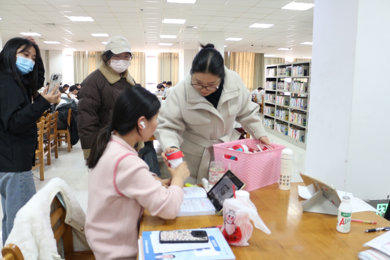 本次助考活动是图书馆持续深化服务育人、营造温馨校园文化的重要举措。它不仅切实缓解了考研学子的冲刺压力,更营造了全校师生携手支持、温暖相伴的良好氛围。图书馆将不断创新服务形式,打造有温度、有力量的育人阵地,助力每一位轻大学子勇敢追梦,抵达彼岸。