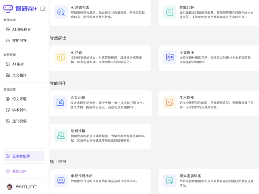集“搜、读、写、研”于一体,支持文献收藏、笔记管理、智能选题、写作润色、大纲生成、期刊推荐、学习任务管理,覆盖科研学习全流程。