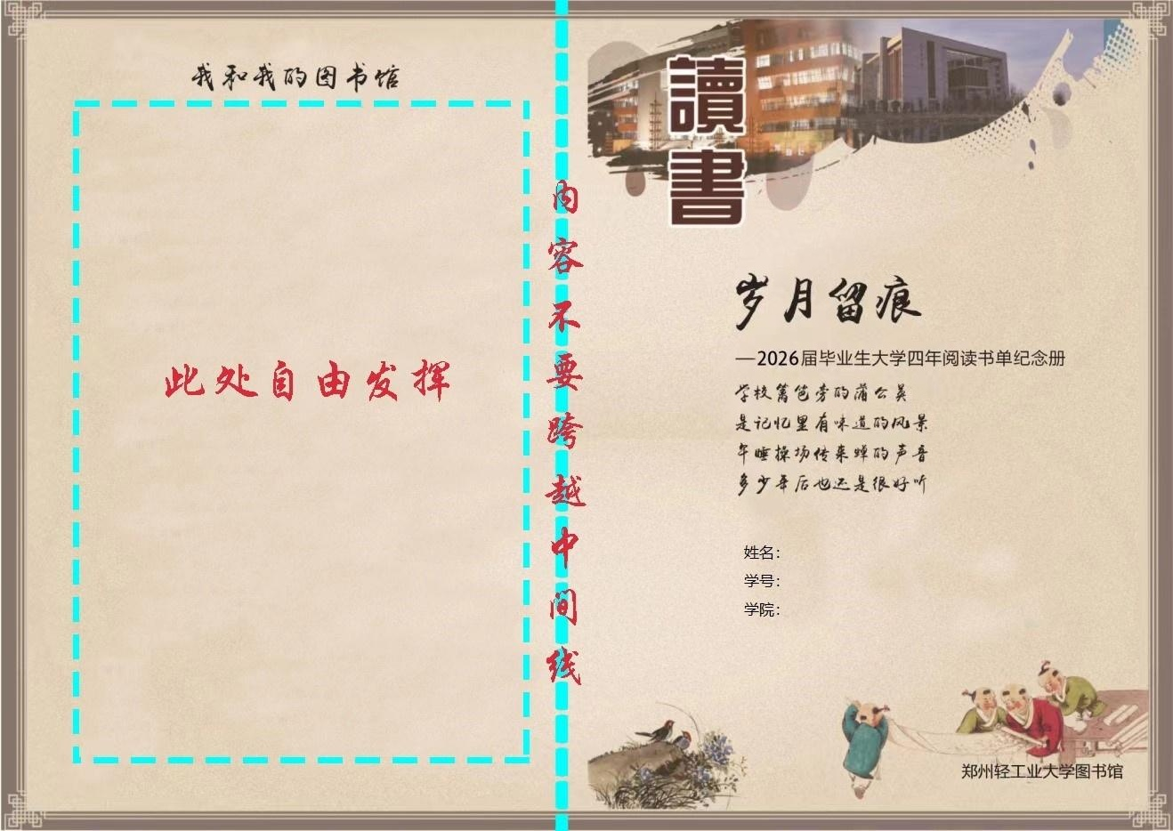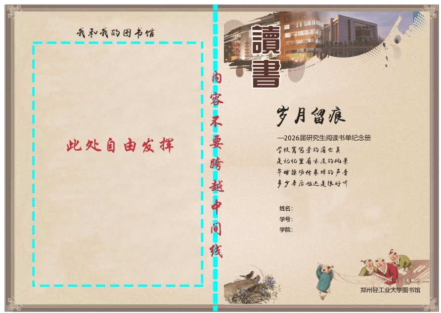 1.图书馆提供“岁月留痕”——本科生版和研究生版模板,毕业生根据阅读书单长短选择相应模板。